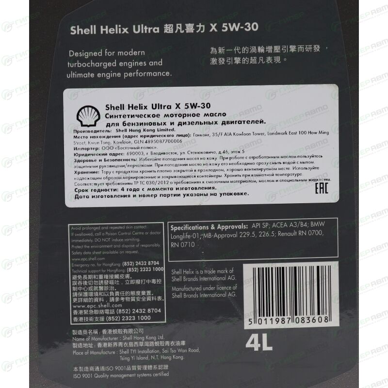 Вы можете купить масло моторное shell helix ultra x 5w30 синтетическое, api sp, acea a3/b4, универсальное, 4л, арт. 550058083 в интернет-магазине моторных масел Гиперавто. Цена на SHELL 550058083, описание, характеристики и фотографии.
