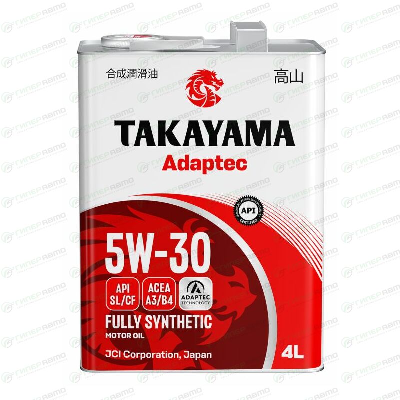 Синтетическое всесезонное моторное масло TAKAYAMA SAE 5W-30 API SL/CF разработано для использования в бензиновых, турбированных, двигателях легковых автомобилей. Подходит для применения в дизельных двигателях легких грузовиков. Высококачественные базовые масла и многофункциональный пакет присадок обеспечивает быстрый и легкий запуск двигателя при низких температурах, превосходную защиту двигателя от износа, увеличенный межсервисный интервал, предотвращает образование отложений. Обладает низким расходом на угар, отменными моющими свойствами, максимальным для данного класса ресурсом.