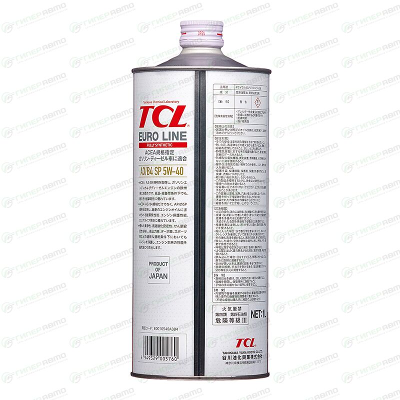 Вы можете купить масло моторное tcl euro line 5w40, синтетическое, api sp, acea a3/b4, универсальное, 1л, арт. e0010540a3b4 в интернет-магазине моторных масел Гиперавто. Цена на TCL E0010540A3B4, описание, характеристики и фотографии.