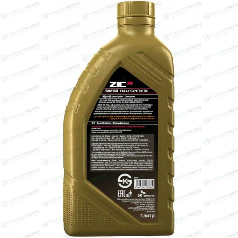 Масло моторное ZIC X9 5w30, синтетическое, API SL, ACEA A3/B3/B4, универсальное, 1л, арт. 132614. Купить ZIC 132614 по доступной цене в интернет-магазине Гиперавто. (55642)