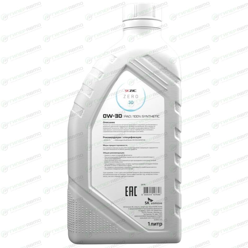 Масло моторное ZIC ZERO 30 0w30
