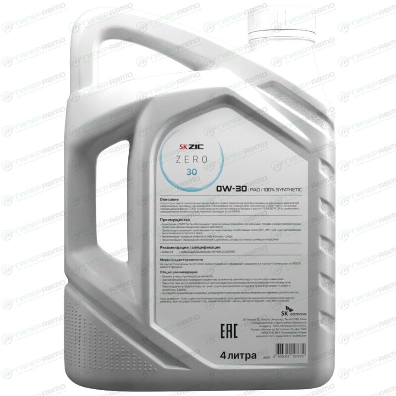 Масло моторное ZIC ZERO 30 0w30