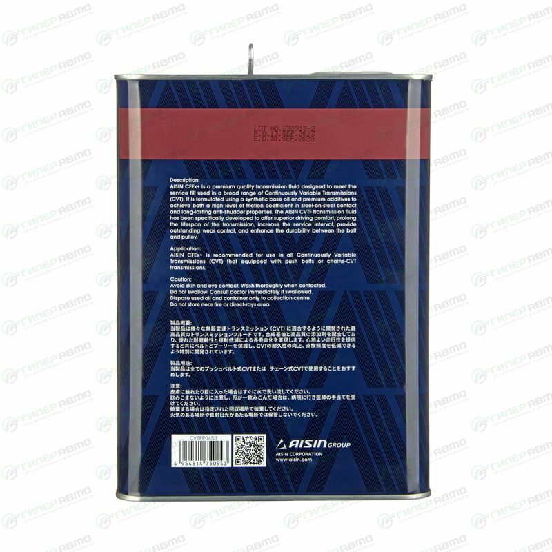 Универсальное трансмиссионное масло для вариаторной коробки передач. Работает в широком температурном диапазоне -40 до +150 °С. При высоких температурах жидкость Aisin сохраняет стабильность и максимально эффективно передает крутящий момент от двигателя. Исключает задержки переключения в зимнее время за счет улучшенных характеристик текучести при низких температурах. Достижение оптимальных условий трения обеспечивает плавное бесступенчатое переключение передач, исключает дергание и рывки. Не вспенивается и эффективно отводит тепло от фрикционов. Оптимальное трение уменьшает потерю мощности, улучшает реакцию и обеспечивает надежную работу вариаторной трансмиссии в целом.