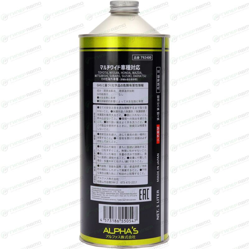 Масло трансмиссионное ALPHA'S ATF Wide 3-D, полусинтетическое, универсальное для АКПП