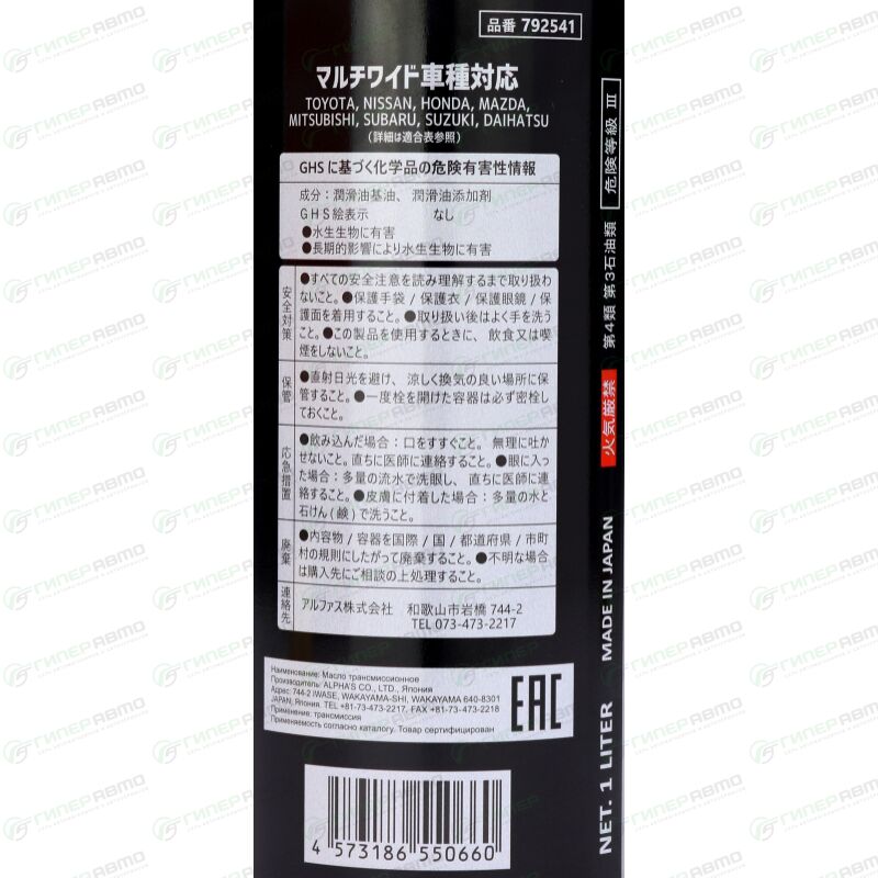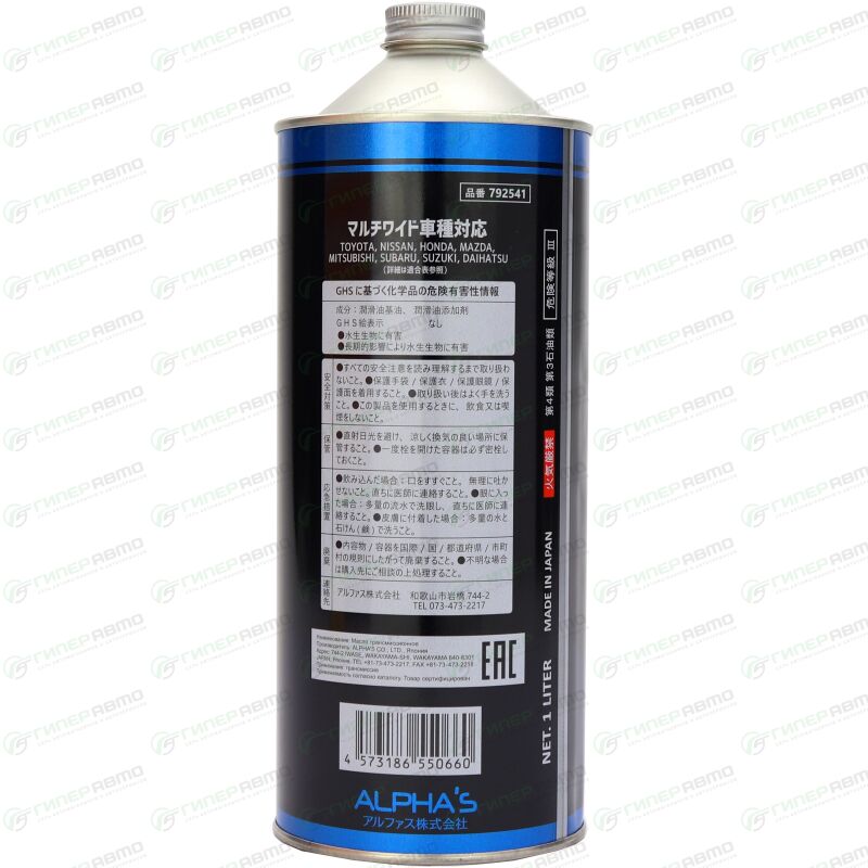Масло трансмиссионное ALPHA'S CVTF, синтетическое, универсальное для вариаторов