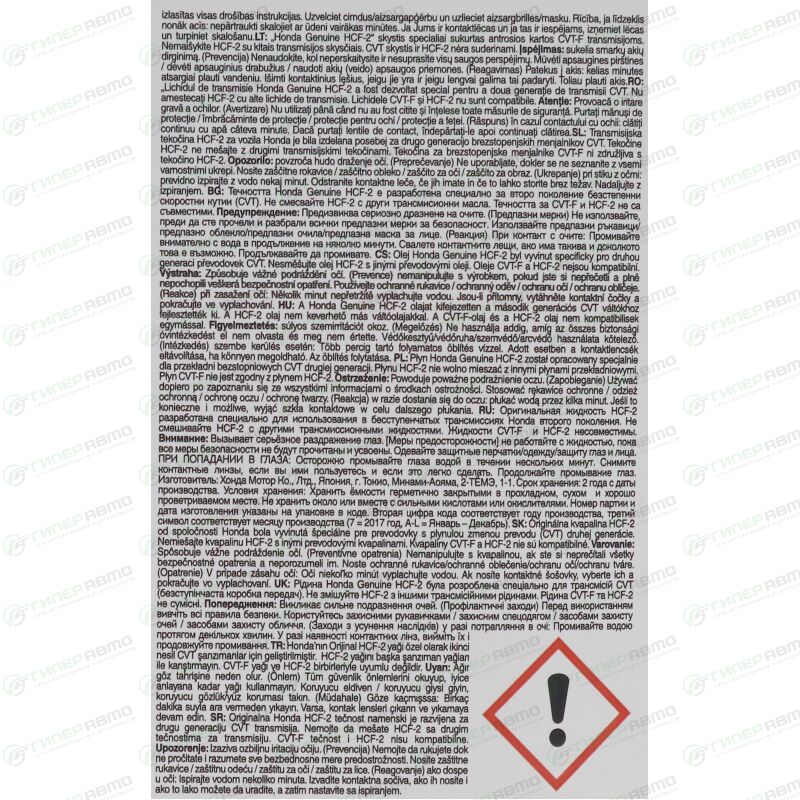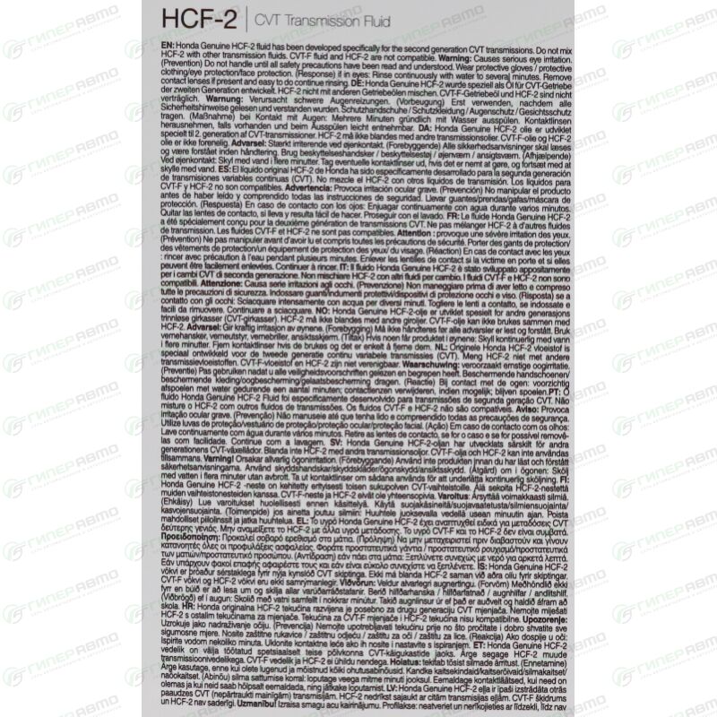 Жидкость Honda CVT Fluid-2 HCF-2 предназначена для коробок вариаторного типа, новейших автомобилей Хонда. Масло обеспечивает бесперебойную работу системы CVT в последних поколениях автомобилей Honda. Обладает улучшенной формулой, которая отвечает самым последним стандартам качества Honda и обеспечивает отличное переключение передач при минимальном трении узлов трансмиссии, что позволяет экономить топливо.