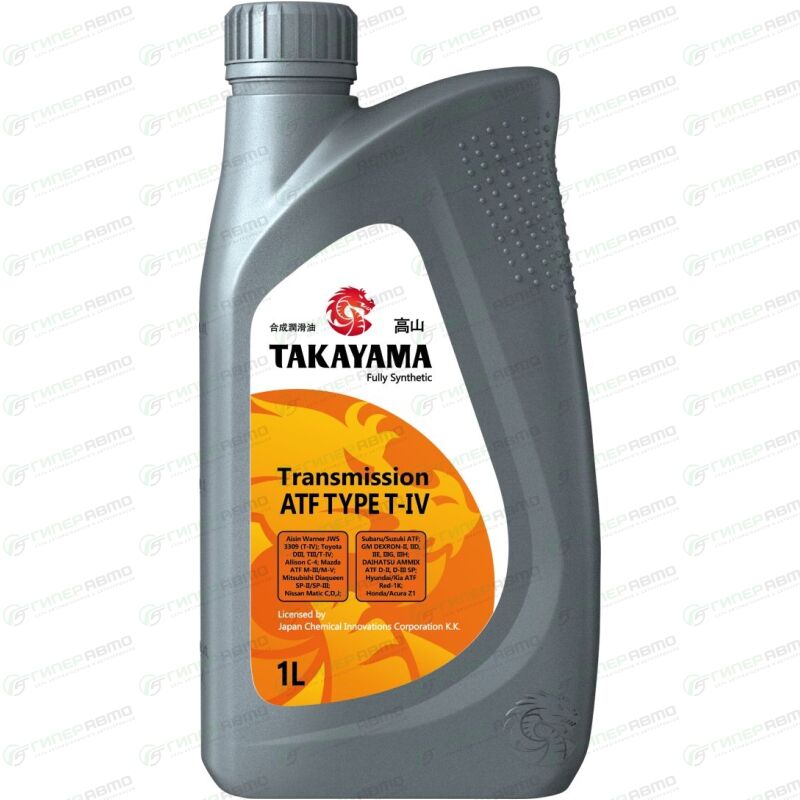 Жидкость для автоматических трансмиссий TAKAYAMA ATF Type T-IV — высококачественная синтетическая трансмиссионная рабочая жидкость, разработанная специально для применения в автоматических коробках передач легковых, внедорожных и коммерческих автомобилей Toyota и Lexus, в том числе трансмиссии AISIN.