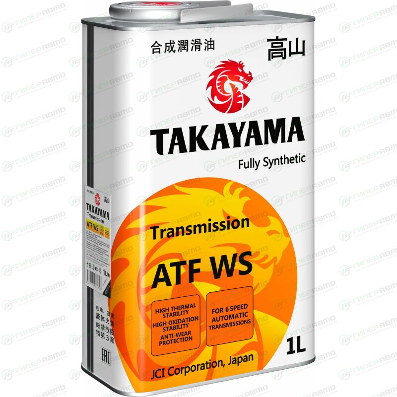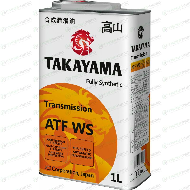 Жидкость для автоматических трансмиссий Takayama Transmission ATF WS — синтетическая маловязкая жидкость предназначена для современных 6-ступенчатых автоматических трансмиссий AISIN-WARNER, где производитель рекомендует использовать трансмиссионные жидкости спецификации WS. Жидкость изготавливается из смеси синтетических базовых масел и оригинального пакета присадок, что гарантирует высокие термоокислительные свойства, обеспечивает стойкость к механическому износу и плавное переключение передач в любых режимах эксплуатации.