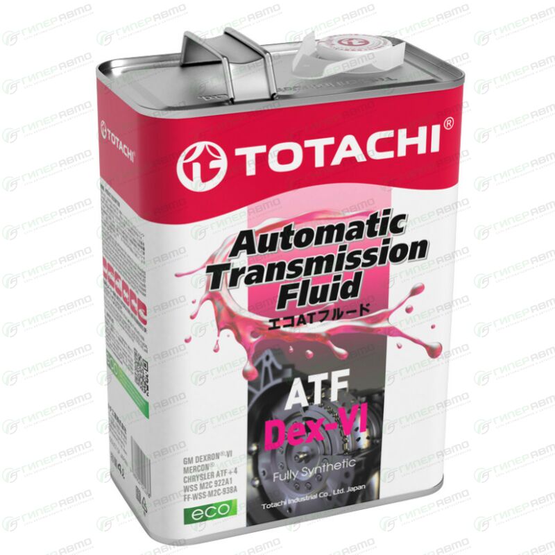 Масло трансмиссионное Totachi ATF Dex-VI, синтетическое, Dexron VI, для АКПП и ГУР, 4л, арт. 20904. Купить TOTACHI 20904 по доступной цене в интернет-магазине Гиперавто. (FW282)