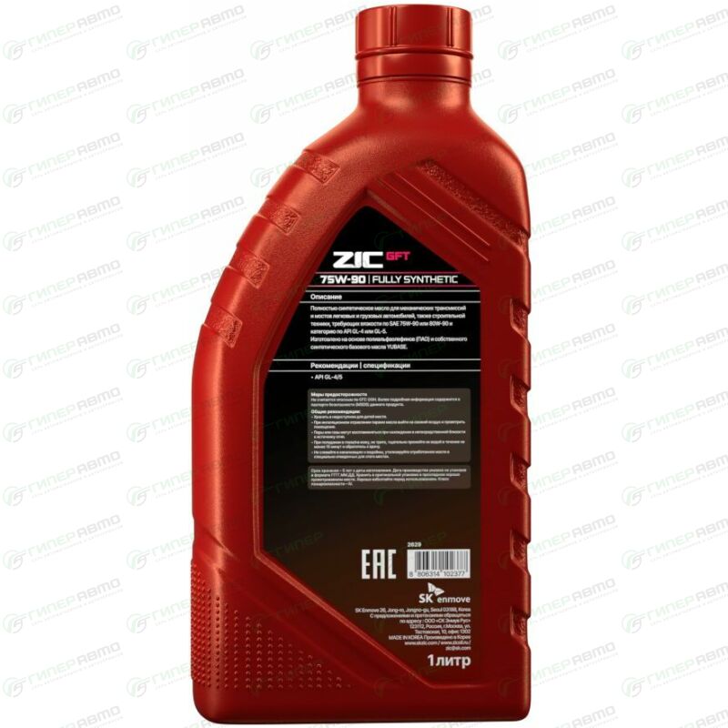 Полностью синтетическое трансмиссионное масло для механических трансмиссий легковых автомобилей и коммерческого транспорта, требующих вязкость по SAE 75W-90, категории по API GL-4/GL-5. Предназначено для использования в коробках передач, раздаточных коробках, а так же в коробках отбора мощности и редукторах ведущих мостов, требующих применения масел как класса API GL-4, так и масел класса API GL-5. ZIC GFT 75W-90 произведено с использованием ПАО (полиальфаолефинов), собственного синтетического базового масла YUBASE (группа III по API) и многофункционального пакета присадок.