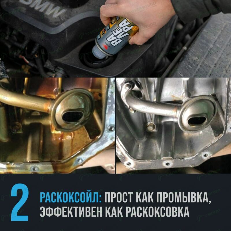 Это название принадлежит удивительному продукту, который применяется столь же просто, как промывка, а по силе работает, как Раскоксовка. Раскоксойл открывает дренажные отверстия поршня и возвращает подвижность маслосъемным кольцам. -