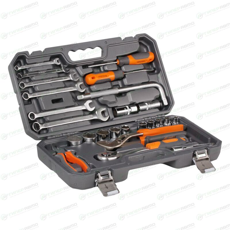 Продуманный профиль рабочей части торцевых головок смещает пятно контакта с ребра грани на её поверхность, что предотвращает повреждение болтов и гаек даже при самых высоких нагрузках. Эргономичный профиль рукояток приводов и воротков позволяет развивать большее усилие без риска повреждения кистей рук. Надёжный трещоточный механизм на 72 зуба значительно повышает производительность труда и снижает нагрузки на организм.