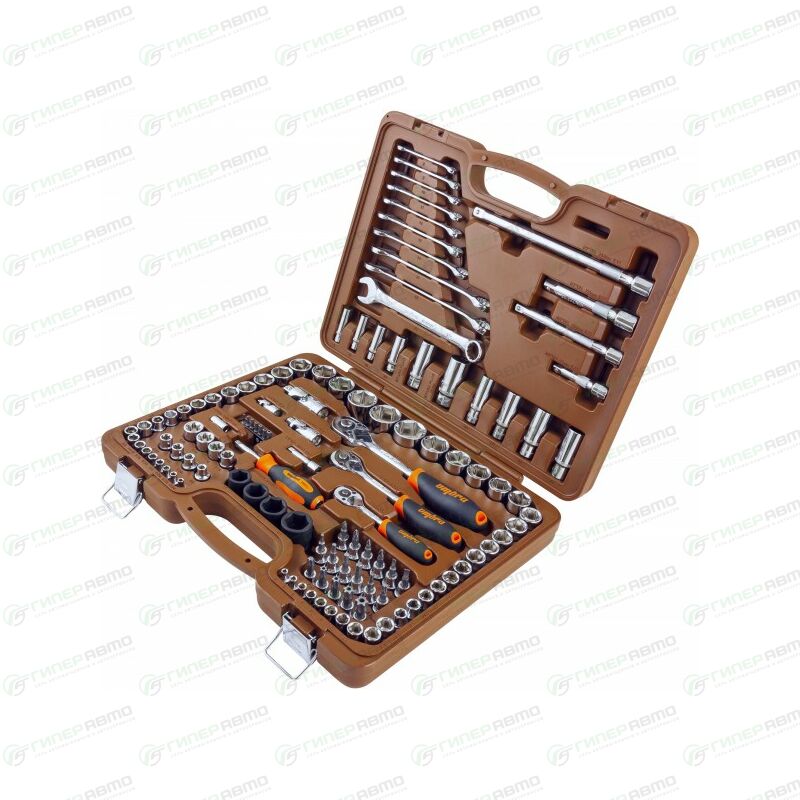 Набор инструмента, комплектация которого рассчитана на производство работ по техническому обслуживанию атомобильной техники в условиях ремонтных мастерских. Инструменты, входящие в состав набора, позволяют обслуживать крепежные детали метрических и дюймовых размеров. Ассортимент дополнен торцевыми головками с рабочим профилем TORX® и головками для механизированного инструмента распространенных размеров.