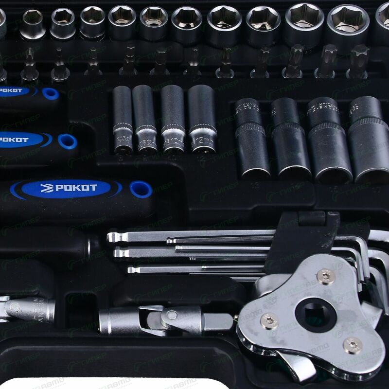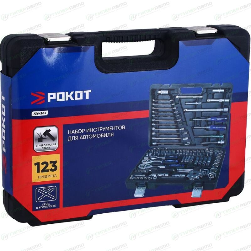 Набор автомобильных инструментов РОКОТ включает 123 предмета, необходимых для обслуживания и ремонта транспортных средств, а также содержит инструменты, которые пригодятся в быту для проведения мелких ремонтных работ. Удобный и прочный пластиковый кейс представляет собой органайзер, в котором всегда легко можно найти необходимый предмет. Набор содержит свечные головки, комбинированные ключи, удлинители, отвертки, торцевые головки и биты, а также трещоточные ключи. Все предметы выполнены из углеродистой стали повышенной прочности, отличаются износостойкостью и устойчивостью к деформации. Прекрасный подарок для автовладельца.