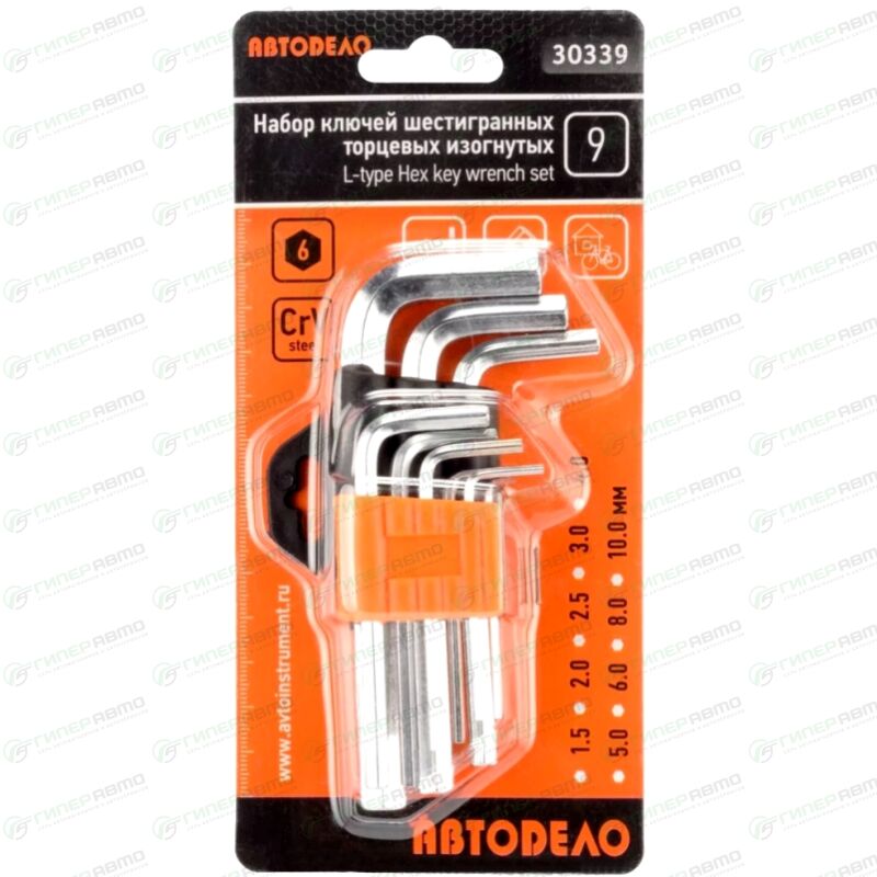 Набор Г-образных шестигранников (имбусовых ключей) АВТОДЕЛО применяется для работы с винтовым крепежом имеющим внутренний рабочий профиль в виде шестигранника. Благодаря удобной изогнутой форме шестигранника обеспечивается максимальный крутящий момент. Имбусовый ключ имеет разную длину плеч, что позволяет выполнять работы в труднодоступных местах.