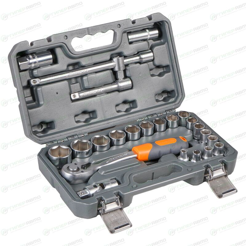 Продуманный профиль рабочей части торцевых головок смещает пятно контакта с ребра грани на её поверхность, что предотвращает повреждение болтов и гаек даже при самых высоких нагрузках. Эргономичный профиль рукояток приводов и воротков позволяет развивать большее усилие без риска повреждения кистей рук. Надёжный трещоточный механизм на 72 зуба значительно повышает производительность труда и снижает нагрузки на организм.