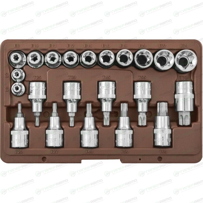 - Насадки торцевые 1/2"DR с вставками-битами TORX®: T20, T25, T27, T30, T40, T45, T50, T55, T60, T70