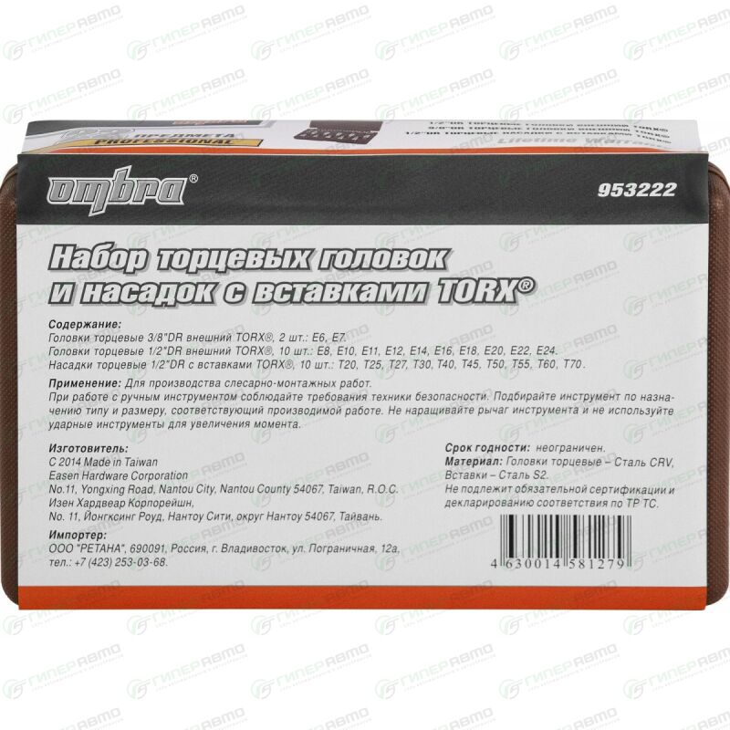 Набор торцевых головок Ombra
