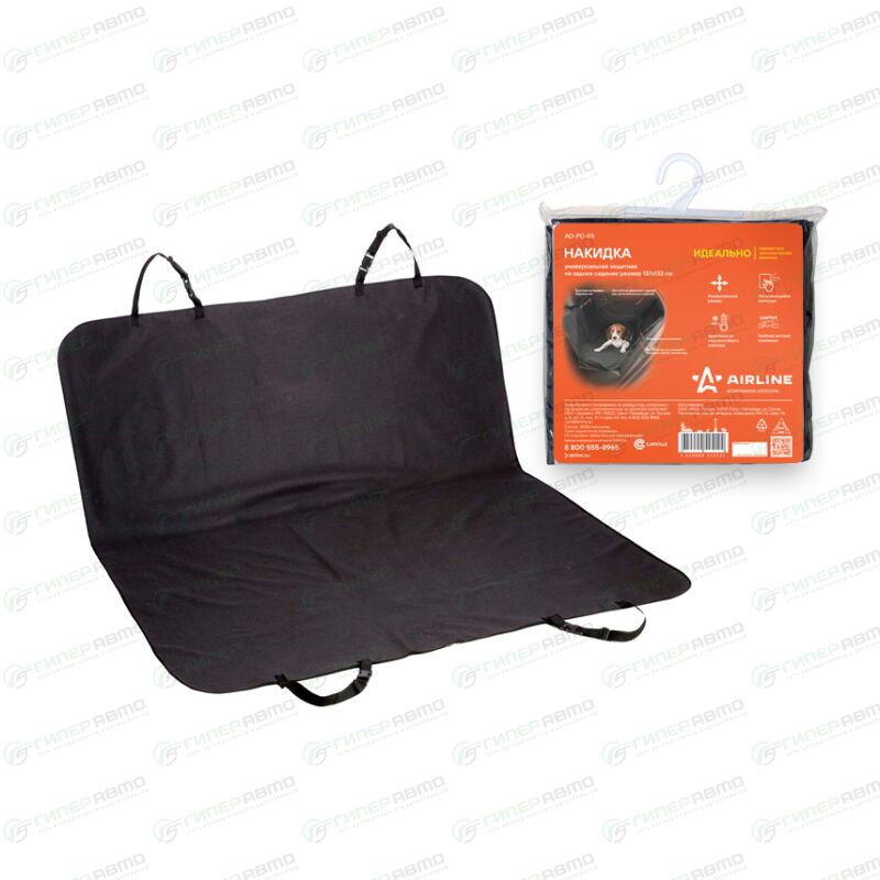 Вы можете купить накидка защитная airline для заднего ряда, полиэстер, черный цвет, арт. ao-pc-05 в интернет-магазине автомобильных чехлов на сиденья Гиперавто. Цена на AIRLINE AO-PC-05, описание, характеристики и фотографии.