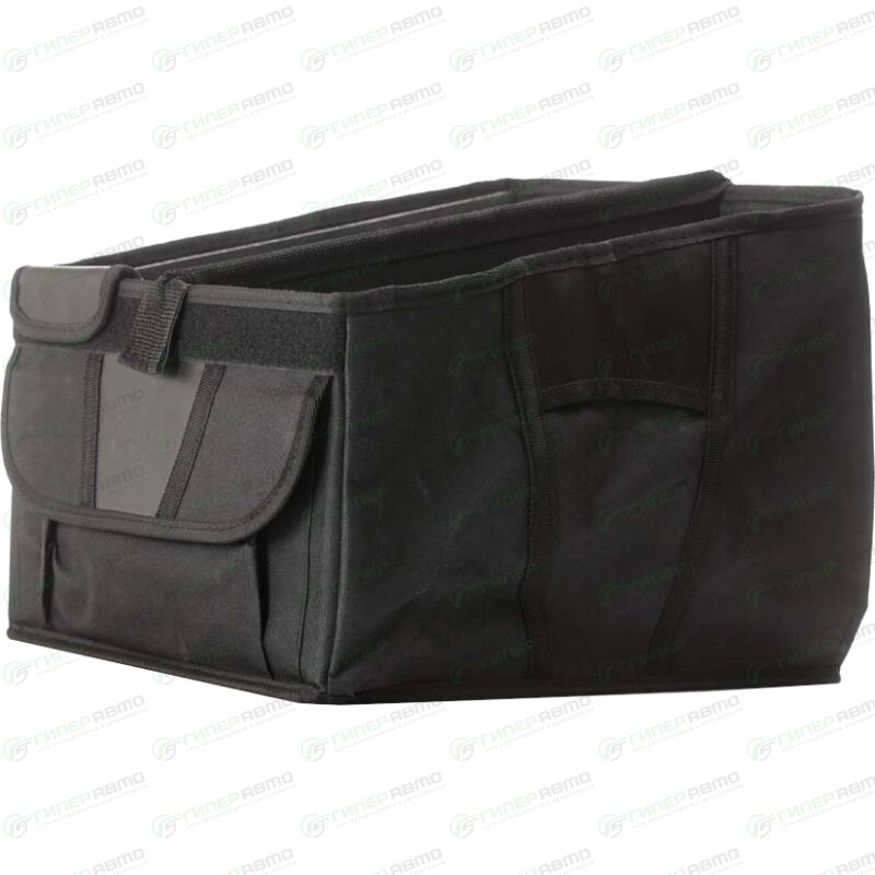 Благодаря двум вместительным отсекам и накладным карманам в него помещается множество предметов, что позволяет хранить и транспортировать в багажнике автомобиля инструменты, средства автохимии и автокосметики, автомобильные аксессуары и прочее. Выполнен из прочного и надёжного материала, который легко мыть и удалять загрязнения. При необходимости органайзер складывается в плоскую, компактную сумочку, позволяя освободить место в багажнике автомобиля.