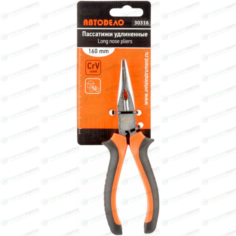 Пассатижи удлиненные АВТОДЕЛО изготовлены из хром-ванадиевой стали 45 методом горячей штамповки (ковки на молотах). Предназначены для захвата и перекусывания проволоки средней твердости с пределом прочности на растяжение,а так же для удержания предметов круглой или плоской формы при выполнении различных слесарно-монтажных работ.