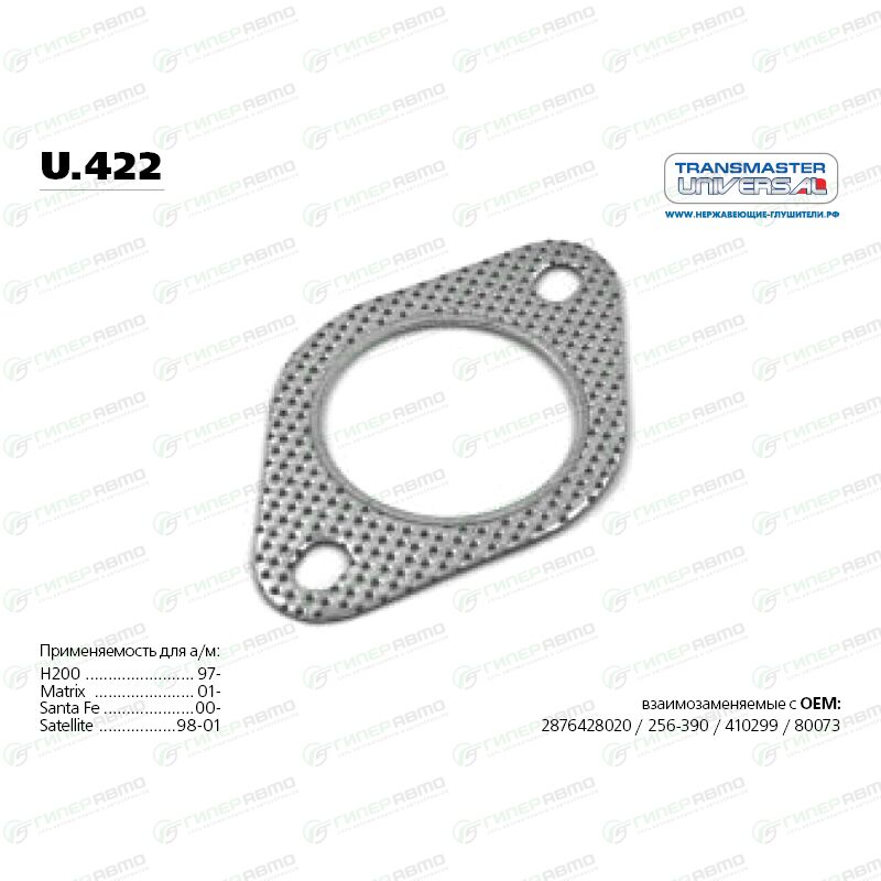 Вы можете купить прокладка приемной трубы выхлопной системы transmaster universal, паронитовая металлосодержащая, арт. u.422 в интернет-магазине прокладок и уплотнительных колец выхлопной системы Гиперавто. Цена на TRANSMASTER u.422, описание, характеристики и фотографии.