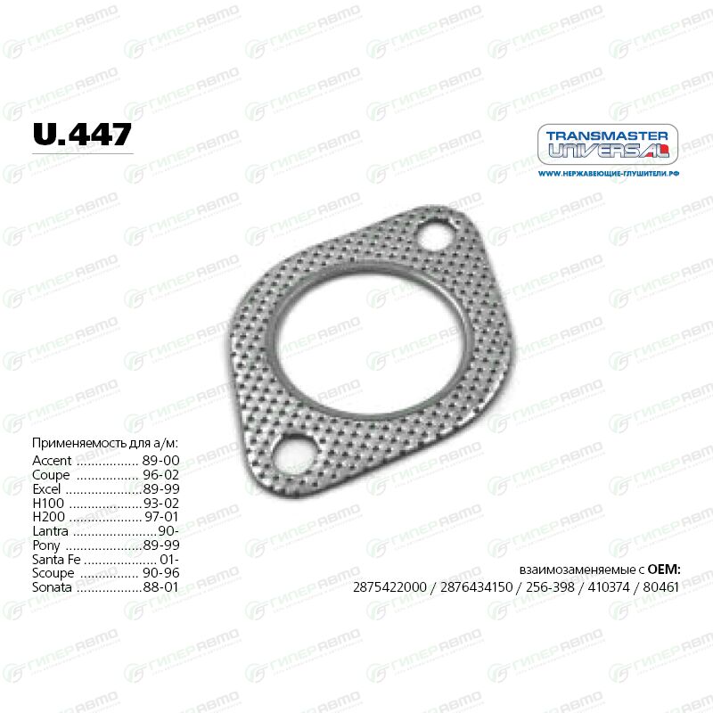 Вы можете купить прокладка приемной трубы выхлопной системы transmaster universal, паронитовая металлосодержащая, арт. u.447 в интернет-магазине прокладок и уплотнительных колец выхлопной системы Гиперавто. Цена на TRANSMASTER u.447, описание, характеристики и фотографии.