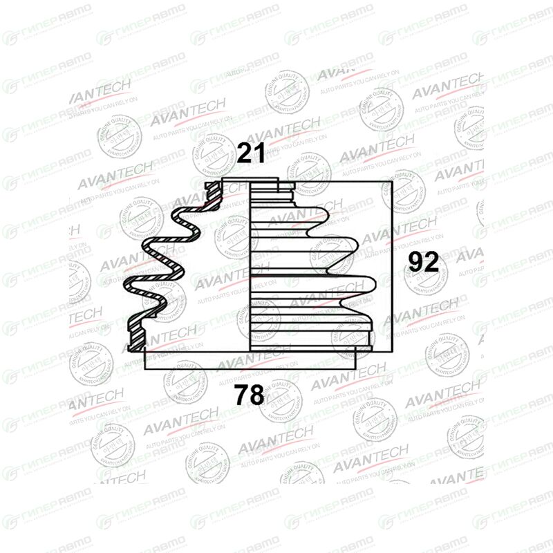 Никаких подделок! В Гиперавто принята нулевая терпимость к контрафакту. Неважно, ищете вы заводской «оригинал» или доступный аналог — все запчасти должны быть подлинными. Мы являемся официальной точкой продаж пыльников привода AVANTECH и получаем продукцию напрямую от производителя. Возможность столкнуться с подделками, при покупке в Гиперавто, исключена.