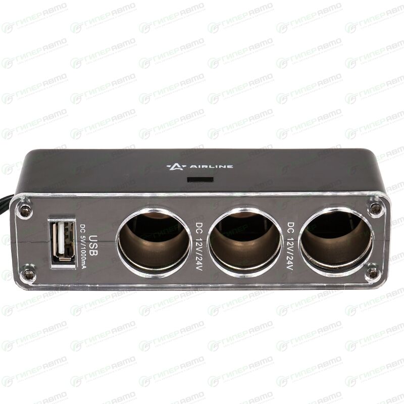 Вы можете купить разветвитель прикуривателя airline 12/24в, 3 гнезда, 1xusb (5в, 0.5а), 60вт, кабель 60см, черный, арт. asp-3u-07 в интернет-магазине зарядных устройств для телефонов Гиперавто. Цена на AIRLINE ASP-3U-07, описание, характеристики и фотографии.