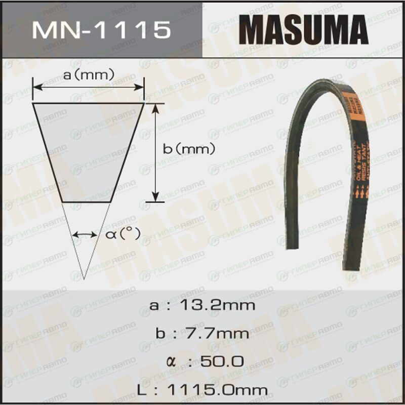 Вы можете купить ремень клиновидный "masuma" oem_11720-0c401 в интернет-магазине приводных ремней Гиперавто. Цена на MASUMA MN1115, описание, характеристики и фотографии.