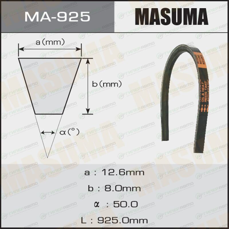 Вы можете купить ремень клиновидный "masuma" oem_90916-02301 в интернет-магазине приводных ремней Гиперавто. Цена на MASUMA MA 925, описание, характеристики и фотографии.