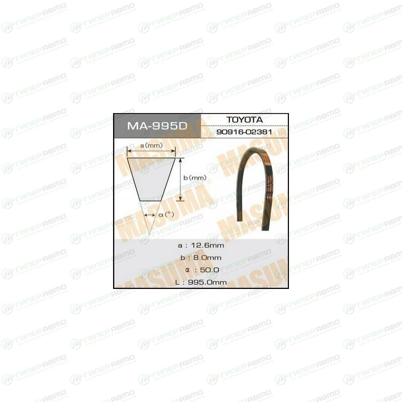 Вы можете купить ремень клиновидный "masuma" oem_90916-02381 в интернет-магазине приводных ремней Гиперавто. Цена на MASUMA MA 995, описание, характеристики и фотографии.