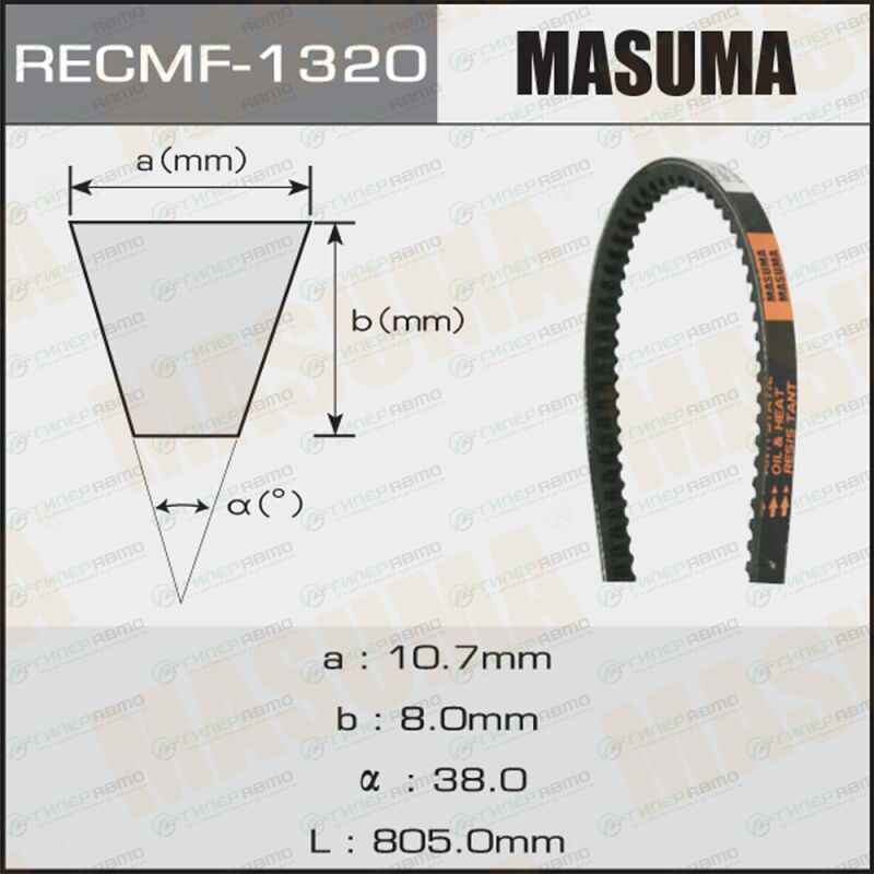 Вы можете купить ремень клиновидный masuma рк.1320 в интернет-магазине приводных ремней Гиперавто. Цена на MASUMA 1320, описание, характеристики и фотографии.