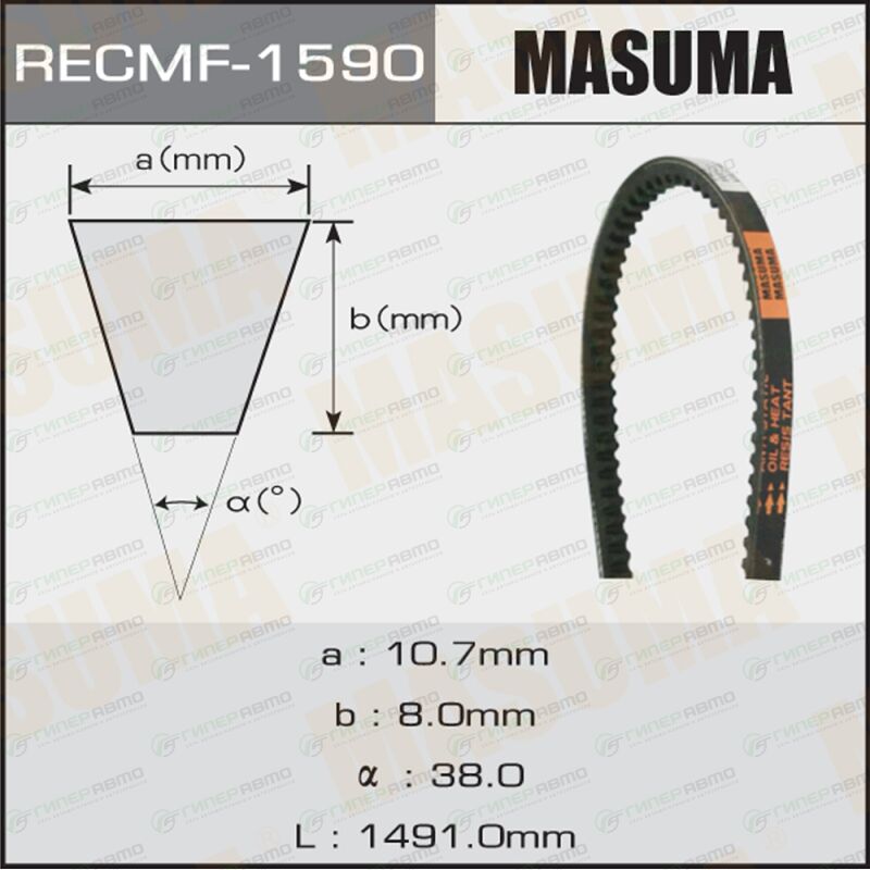 Вы можете купить ремень клиновый masuma 1590 в интернет-магазине приводных ремней Гиперавто. Цена на MASUMA 1590, описание, характеристики и фотографии.