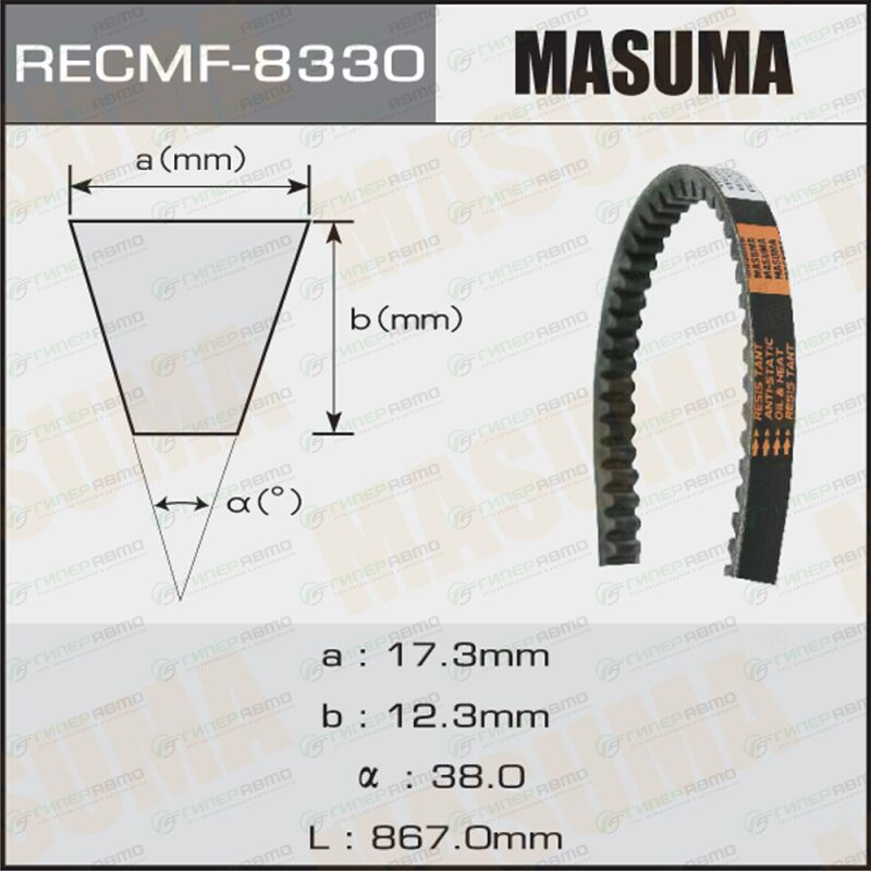 Вы можете купить ремень клиновый masuma 8330 в интернет-магазине приводных ремней Гиперавто. Цена на MASUMA 8330, описание, характеристики и фотографии.