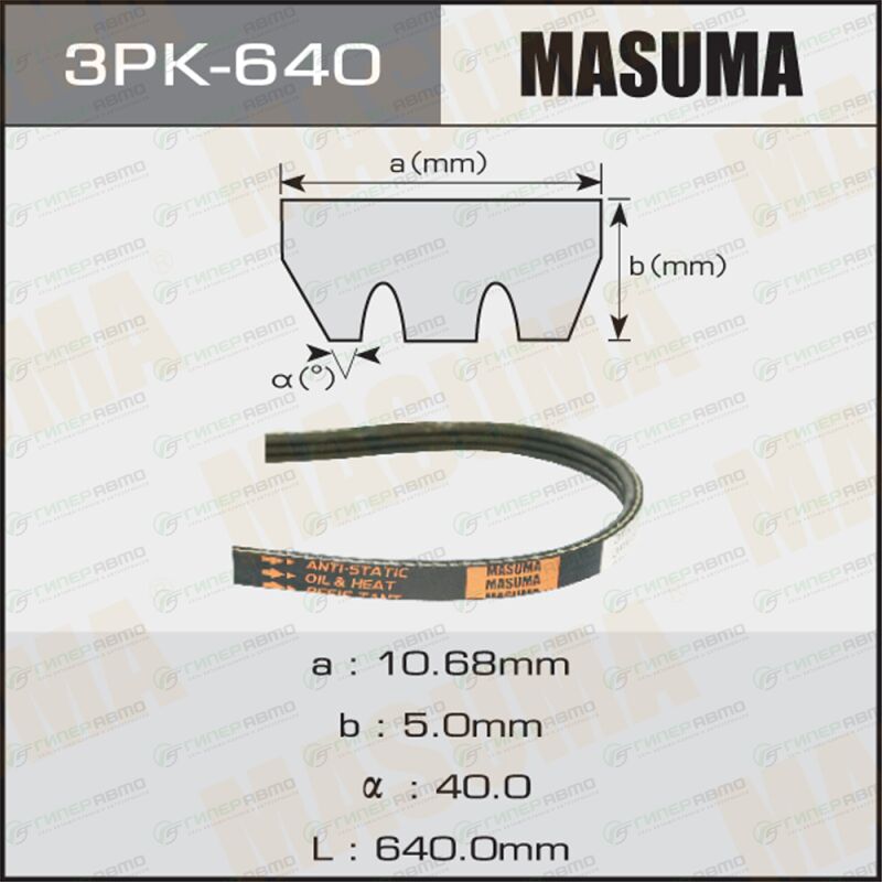 Вы можете купить ремень ручейковый masuma 3pk- 640 в интернет-магазине приводных ремней Гиперавто. Цена на MASUMA 3PK-640, описание, характеристики и фотографии.
