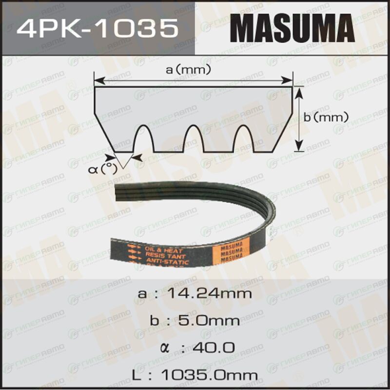 Вы можете купить ремень ручейковый masuma 4pk-1035 в интернет-магазине приводных ремней Гиперавто. Цена на MASUMA рч.4PK-1035, описание, характеристики и фотографии.