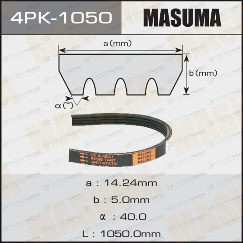 MASUMA 4PK-1050. Купить ремень ручейковый masuma 4pk-1050 по выгодной цене в интернет-магазине запчастей Гиперавто. (98940)