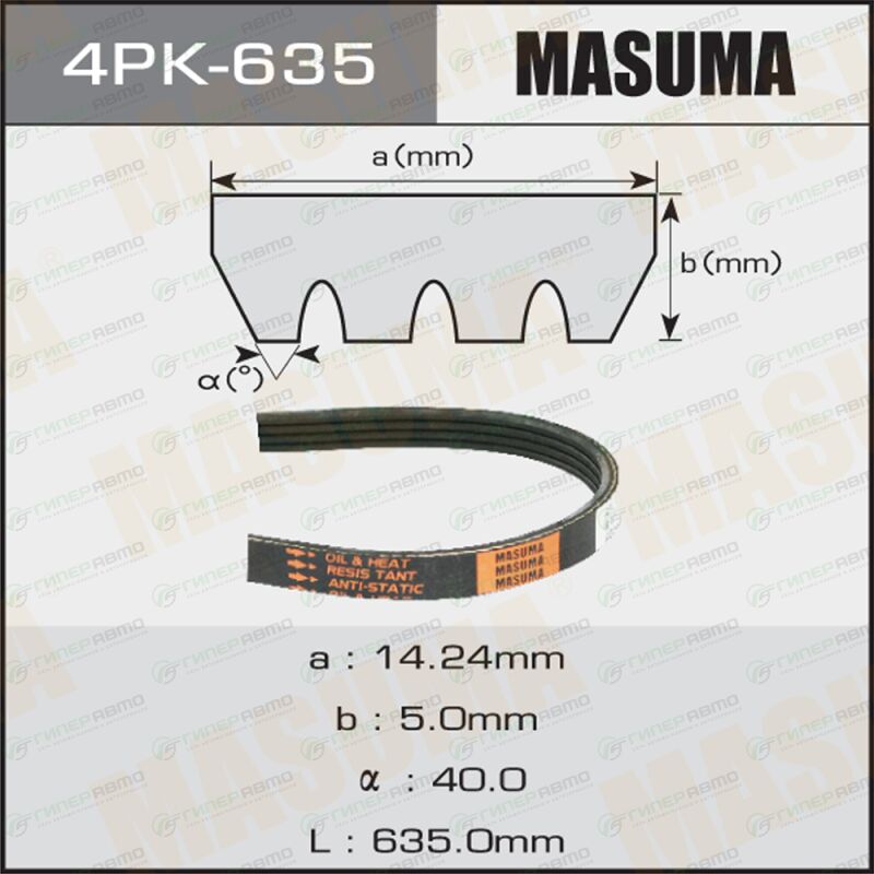 Вы можете купить ремень ручейковый masuma 4pk- 635 в интернет-магазине приводных ремней Гиперавто. Цена на MASUMA 4PK-635, описание, характеристики и фотографии.