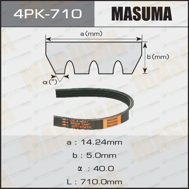 Вы можете купить ремень ручейковый masuma 4pk- 710 в интернет-магазине приводных ремней Гиперавто. Цена на MASUMA 4PK-710, описание, характеристики и фотографии.