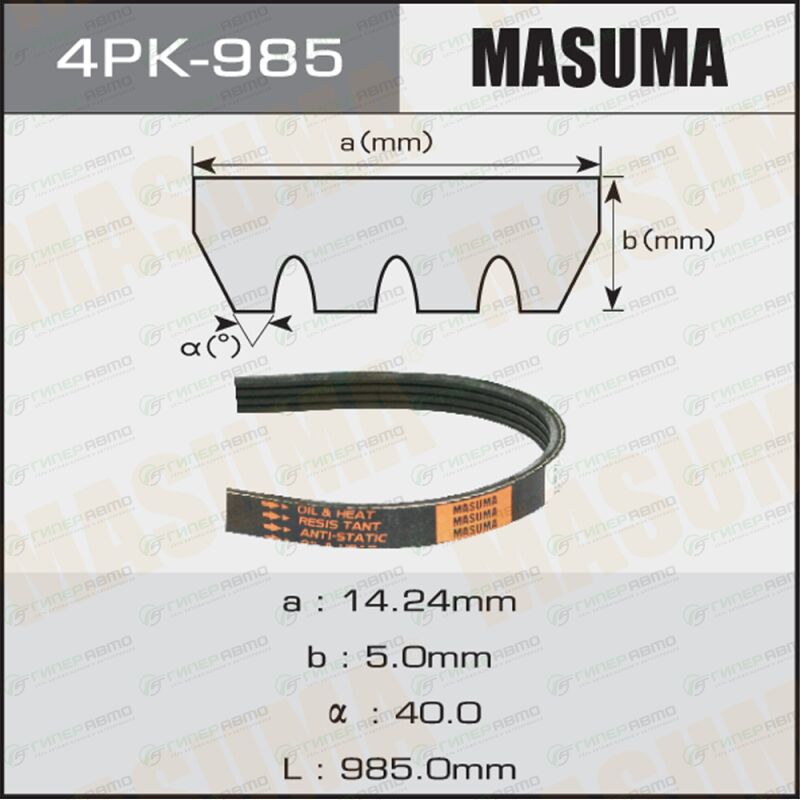 MASUMA 4PK-985. Купить ремень ручейковый masuma 4pk- 985 по выгодной цене в интернет-магазине запчастей Гиперавто. (99202)