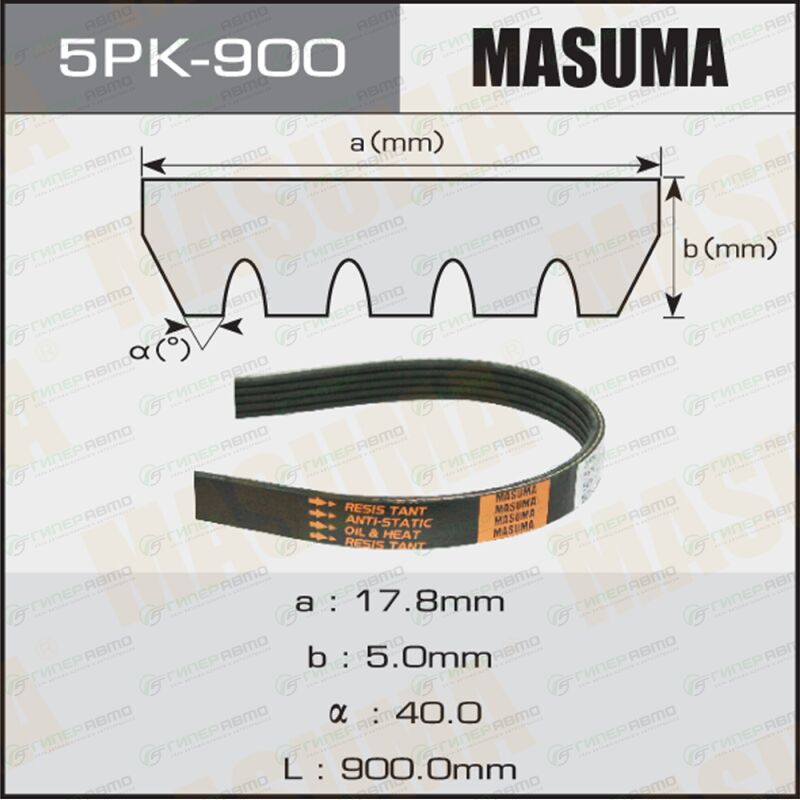 MASUMA 5PK-900. Купить ремень ручейковый masuma 5pk- 900 по выгодной цене в интернет-магазине запчастей Гиперавто. (99280)