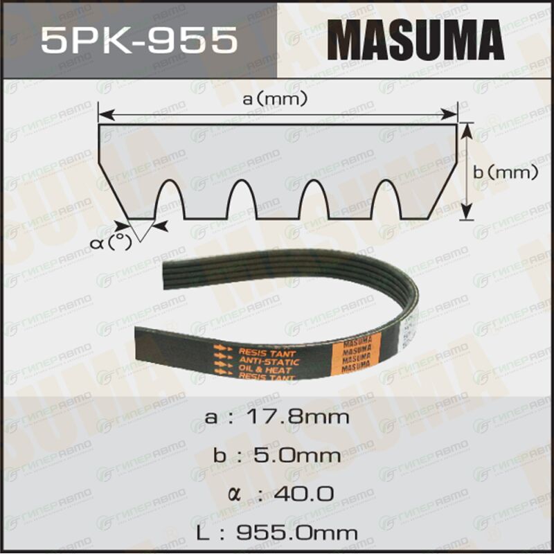Вы можете купить ремень ручейковый masuma 5pk- 955 в интернет-магазине приводных ремней Гиперавто. Цена на MASUMA 5PK-955, описание, характеристики и фотографии.