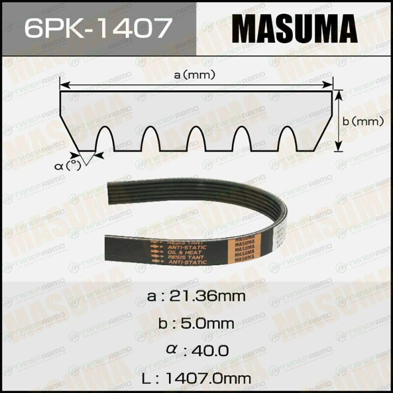 MASUMA 6PK-1407. Купить ремень ручейковый masuma 6pk-1407 по выгодной цене в интернет-магазине запчастей Гиперавто. (79246)