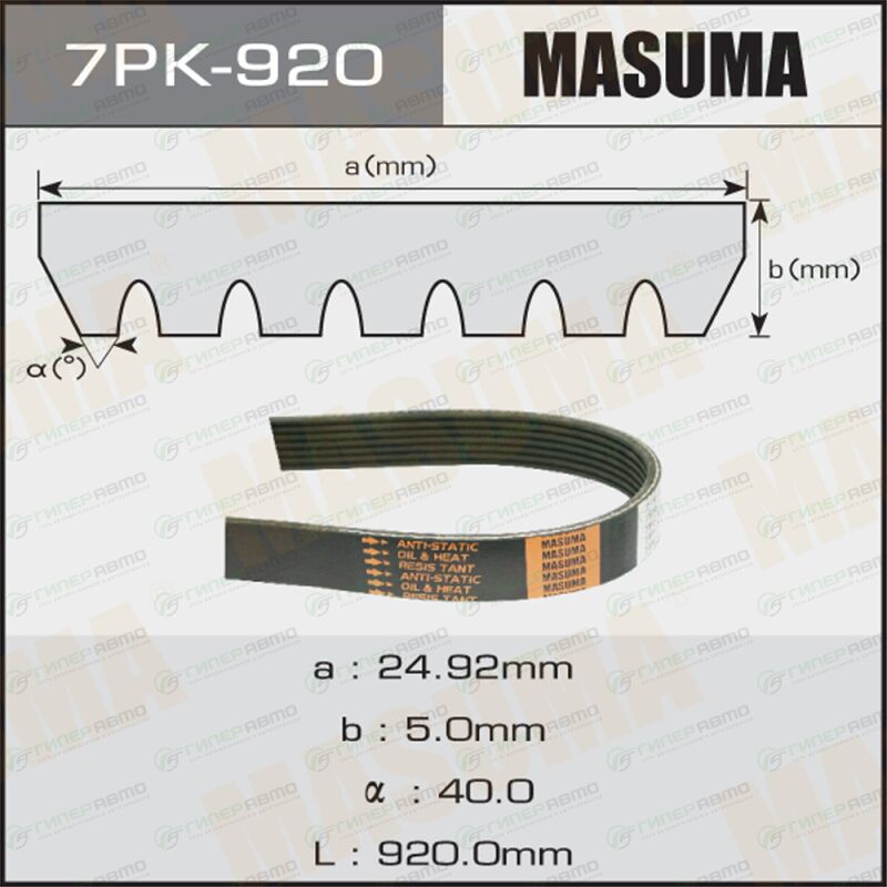 Вы можете купить ремень ручейковый masuma 7pk- 920 в интернет-магазине приводных ремней Гиперавто. Цена на MASUMA рч.7PK- 920, описание, характеристики и фотографии.