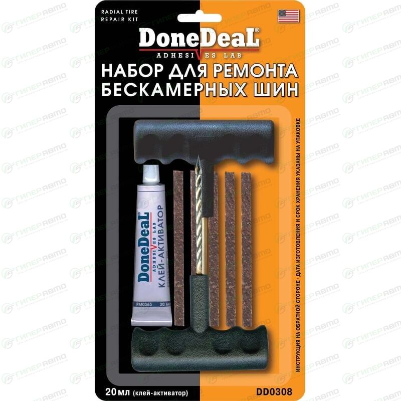 Вы можете купить ремкомплект бескамер. шин, набор donedeal, инструмент, клей, резина (1/10) в интернет-магазине товаров для авто Гиперавто. Цена на DONEDEAL DD0308, описание, характеристики и фотографии.