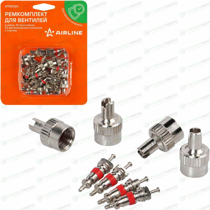 Вы можете купить ремкомплект для вентилей (20 золотников, 20 металл. колп. с ключом) в блистере airline, арт. atrs020 в интернет-магазине вентилей для бескамерных шин Гиперавто. Цена на AIRLINE ATRS020, описание, характеристики и фотографии.