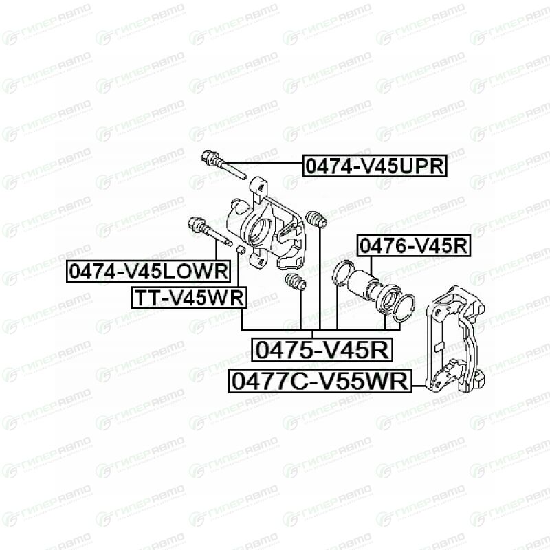 Вы можете купить ремкомплект тормозного суппорта febest, арт. 0475-v45r в интернет-магазине ремкомплектов тормозной системы Гиперавто. Цена на Febest 0475-V45R, описание, характеристики и фотографии.