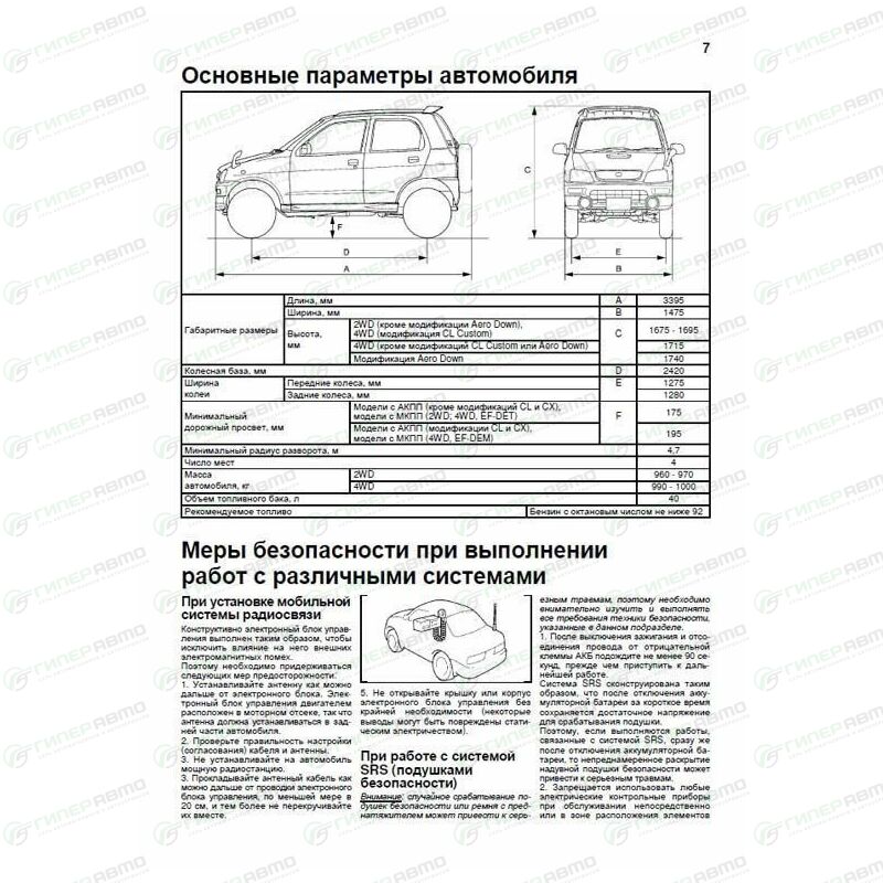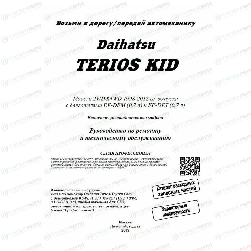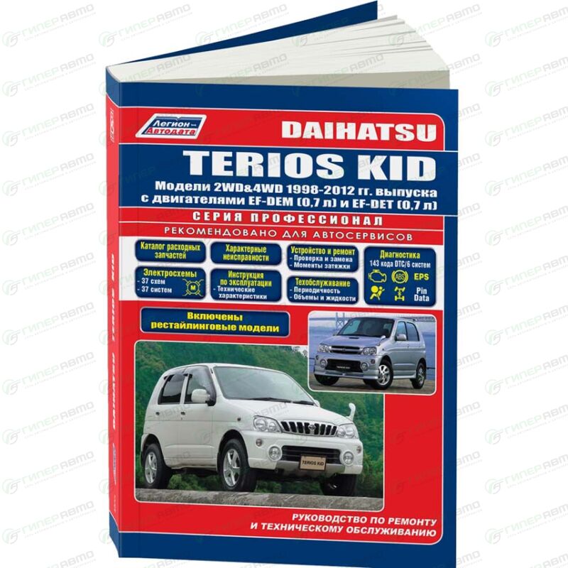 В руководстве дается пошаговое описание процедур по эксплуатации, ремонту и техническому обслуживанию праворульных автомобилей Daihatsu Terios Kid 1998-2012 гг. выпуска, оборудованных бензиновыми двигателями EF-DEM (0,7 л) и EF-DEТ (0,7 л).