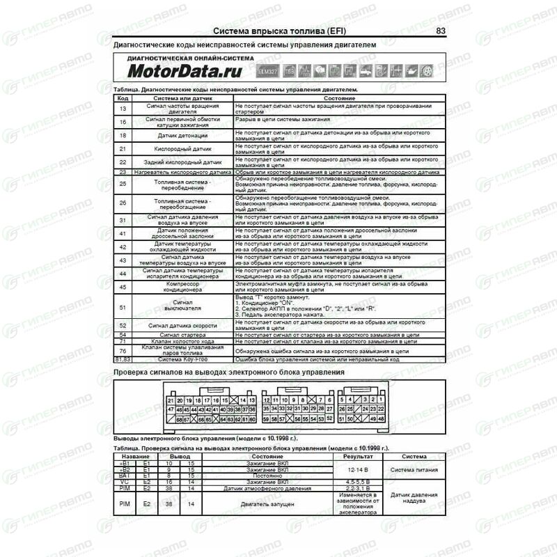 - Приведены разъемы и процедуры проверки сигналов на выводах блоков управления различными системами - PinData.